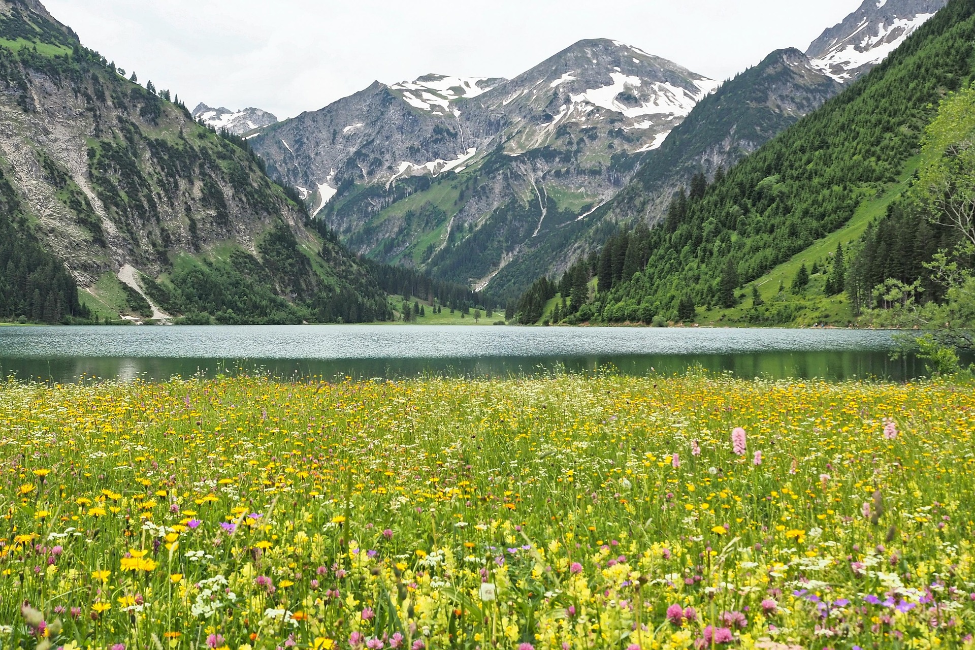 Almwiesen mit bunt blühenden Pflanzen
